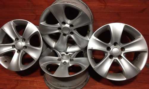 Литые диски от мерседес w 124 неоригинальные, состояние б/у, на одном из дисков глубокие царапины, но трещин, вмятин нет.