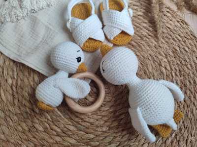 🌟Для тех, кто только знакомится с миром🌟 Гусёнок-погремушка — с деревянным колечком, которое удобно держать крошечным...