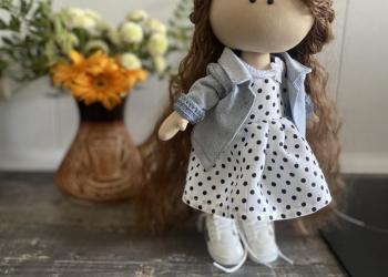 Кукла ручной работы с уникальным дизайном. Высота около 45-50 см, подвижные конечности.