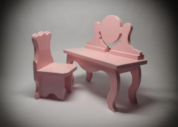 Размер: Столик: длина 180 мм, ширина 80 мм, высота 170 мм Стульчик: длина 70 мм, ширина 70 мм, высота 135 мм Покрашено...