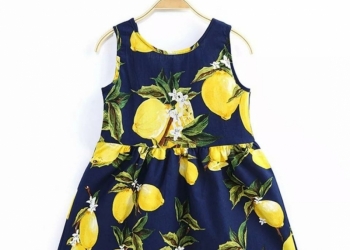 Новое летнее платье сарафан на девочку. Цвет синий с лимончиками. Рост маркирован 100.