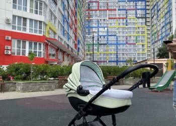 Коляска после одного ребёнка, прогулочной люлькой вообще не пользовались, есть накидки обе люльки, очень удобная, просторная...
