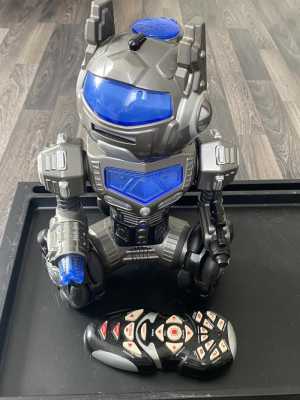 Робот полностью функционирует, в комплекте пульт, батарея и диски для стрельбы.
