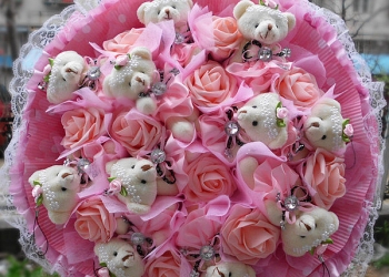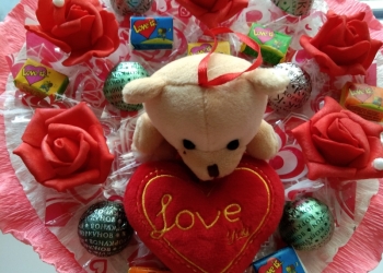 Букетик состоит из мишки, сердце мягкое, всё крепится на хомутики что может в дальнейшем пригодится вместо брелка, 6 шт...