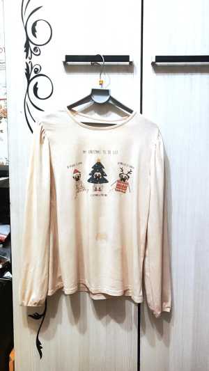 Лонгслив с новогодним принтом, для девочки 8-10 лет, KIABI бежевый