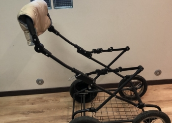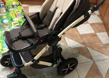 Очень крутая коляска, обивка полностью из экокожи, цвет бежевый.
