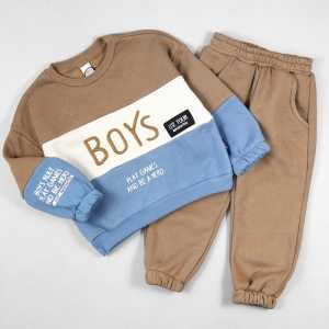 Теплый костюм из футера с мягким начесом внутри, цвет какао. Состав:68% хлопок,32% полиэстер.