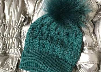 Шапка из мериноса (Италия). Помпон из нат. песца, съемный. На ОГ 55-57 см. Ручная работа.