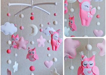Мобиль на детскую кроватку ручной работы в технике макраме..