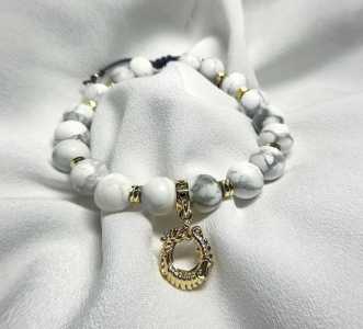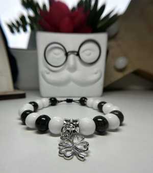 Браслет с белым и черным агатом ✨ Элегантный браслет с граненым белым агатом, черным агатом и позолоченной подвеской...