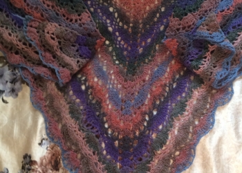 Шаль из чистошерстяной пряжи Дундага. Размах крыльев 230 см, высота 75 см