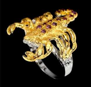 Серебро покрыто родием . Рубины , изумруды , сапфиры и марказиты .