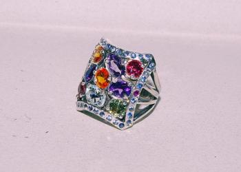 Авторская ручная работа. Камни все природные : цветные сапфиры, рубин, зеленый гранат .