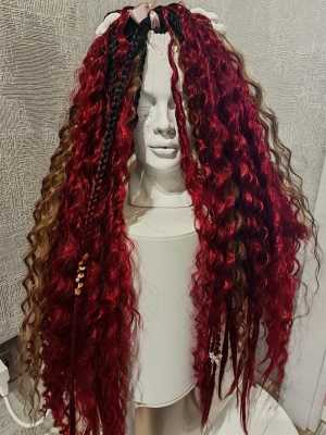 Комплект декудрей в винных тонах. Новый подвижный. Длина 55см ,100кончиков. Достаточно для вплетения всей головы.