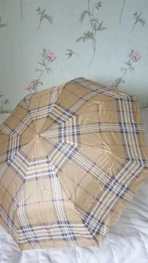 Зонт "Super Mini" бежевого цвета в клетку. Новый, с биркой. Легкий и компактный, подходит для хранения в сумке или кармане.