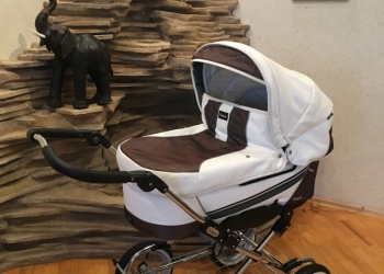 Коляска из высококачественной белой ЭКОкожи (Швеция,оригинал).Функциональная, комплект люлька+прогулочный блок.