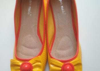 Продаю абсолютно новые жен. балетки. Марка SUPER MODE. Цвет жёлтый/коралл. Изготовлены из искусственного материала.