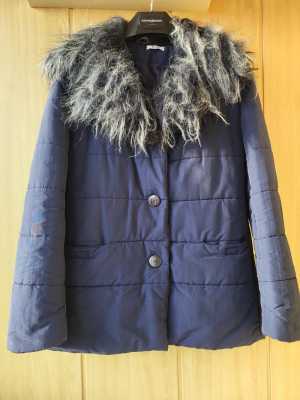 Зимняя куртка с воротником из искусственного меха, чуть приталенная. Легкая, но теплая. Внутри синтепон.