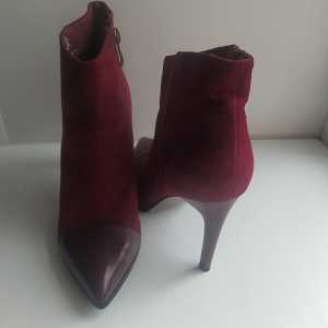 Тёмно-бордового модного цвета, изящные замшевые полусапожки.