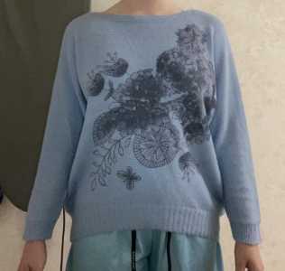Голубая кофта(джемпер),очень мягкая ткань,с принтом,она была одета один раз(после этого не была одета).