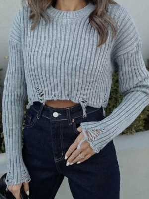 Женский, укороченый свитер, рванный эффект, стильно выглядит