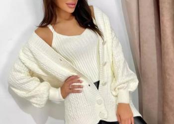 Стильный кардиган с топом, машинная вязка. Производство Турция. Оверсайз.