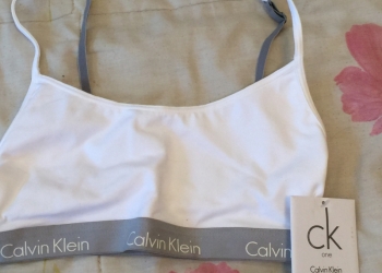 Новый хлопковый укороченный топ-бралетт Calvin Klein белого цвета: - изготовлен из мягкого стрейчевого трикотажа, с...