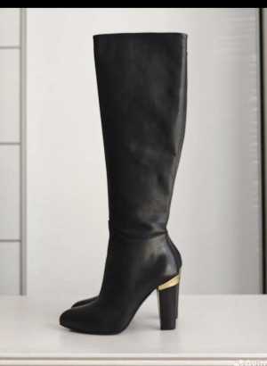 Итальянские ботфорты полностью кожаные с перфорированным голенищем . Высота слоёного каблука 9см.