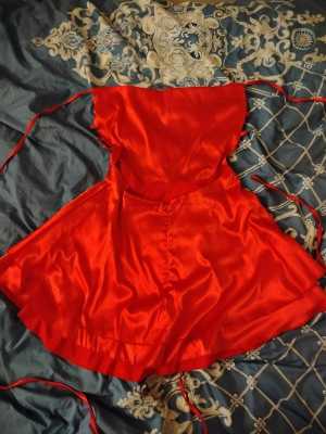 Красное короткое платье, открытое. Размер 42/М (48-55 кг). Длина всего платья (от груди до бедер) 67 см. Талия 33 см.