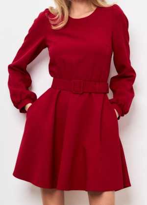 Женское платье красного цвета, размер 50 (L/XL). Изготовлено из полиэстера и спандекса. Платье с круглым вырезом горловины.