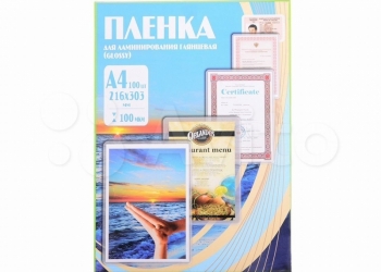 Плёнка для ламинирования Office Kit Толщина пленки - 100 мкм, формат А4, глянцевая, 100 листов в пачке.