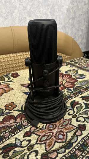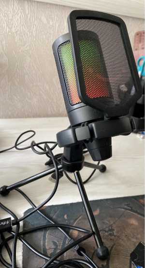 Продаю черный конденсаторный RGB USB микрофон FIFINE AmpliGame A6V в полной комплектации (тринога, USB-провод) Микрофон в...