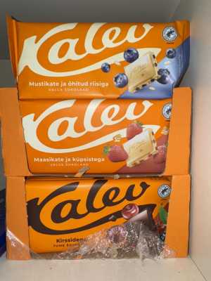 Шоколад белый с клубникой/черникой 100 гр-350 Шоколад темный с вишней 100 гр-350 От 10 шт -300 руб Kalev Эстония