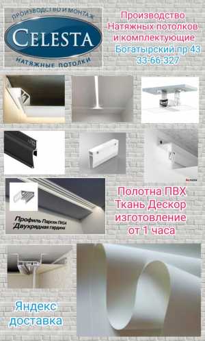 Натяжные потолки "Селеста" – идеальное решение для вашего бизнеса! Компания "Селеста" предлагает выгодное сотрудничество...