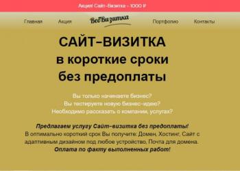 VеbVizitкa.ru Создание Сайт-Визитки в сжатые сроки Заявите о себе в сети интернет! Вы только начинаете бизнес Вы...