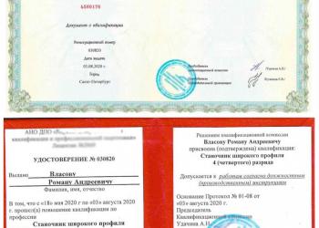 Для оформления удостоверения рабочей профессии или повышения разряда от вас потребуется: Оплата 4800 р. (работаем за нал.