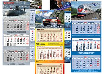Квартальные календари трио/моно на 2026 год с 3D (стерео-варио) шапкой.