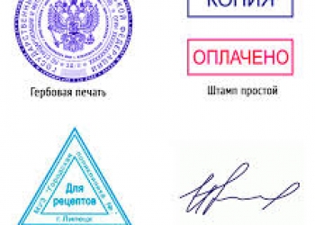 Изготовление любых печатей и штампов любой сложности быстро и качественно, возможна доставка. - новые или по оттиску.