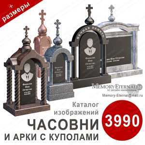 Каталог изображений гранитных часовен и арок с куполами, для ритуального каталога или ритуального сайта.