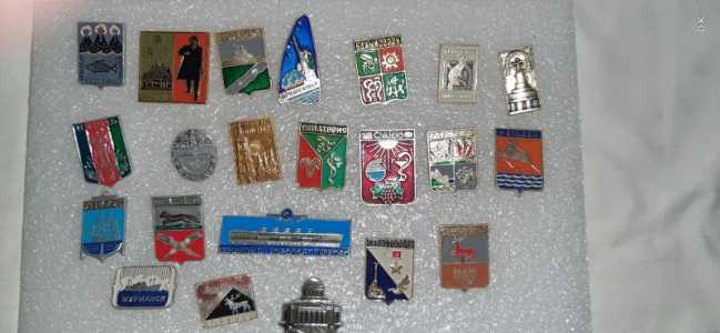 Значки времен СССР тематические "Города". Всего 22 шт. Без торга за 600р.