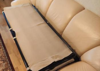 Очень красивый,очень удобный комплект мягкой кожаной мебели.Диван трёхместный со спальным механизмом и два кресла.