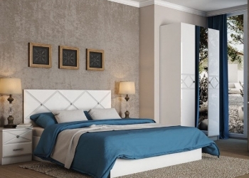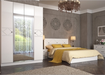Новая модульная спальня "Ницца" со стильными фасадами МДФ цвета Белый глянец, украшенными художественной фрезеровкой и...