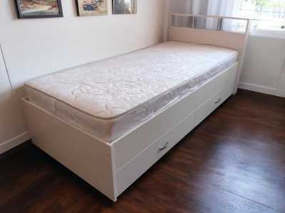 продам кровать бу односпальная с матрасом, взрослую, ширина 90 см + наматрасник