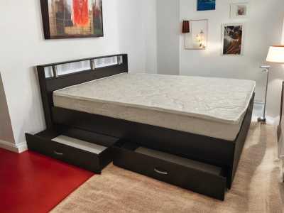 🛏️ Элегантная кровать 160х200, выполненная в современном оттенке венге, с просторными выдвижными ящиками и удобным матрасом...