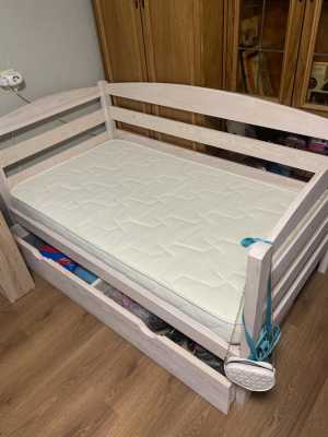 Детская Кровать из массива сосны,Ручная работа с Матрасом Askona junior. Кровать в идеальном состоянии размеры 1600х 900мм.