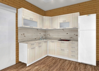Кухня изготовлена из плиты AGT, форма кухни - угловая.