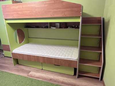 Продаётся двухярусная кровать б/у, в хорошем состоянии. Есть приставная лестница с ящиками для хранения.