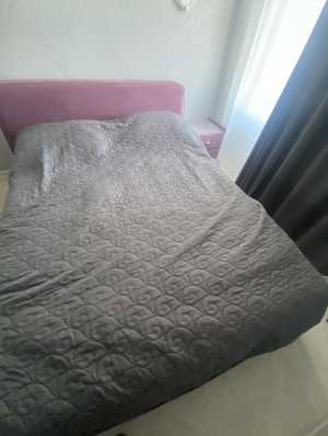 Продается бу кровать с двумя прикроватными тумбами. Каркас МДФ с обивкой из велюра.
