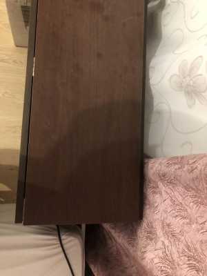 Журнльный столик на крутящихся роликовых колёсиках. Боковая сторона, верх и дно глянец МДФ. Середина тёмное ДСП.