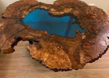Стол из спила дерева капового карагача с эпоксидной смолой сине-голубого цвета Продаём все товары мастерской в наличии по...